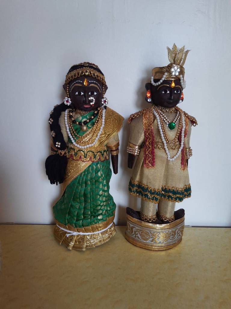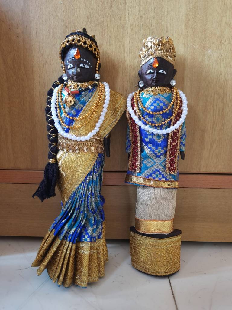 Sumathi says although these dolls are available in Bangalore, she prefers to buy them from Tirupati. Each pair costs about 600 INR.