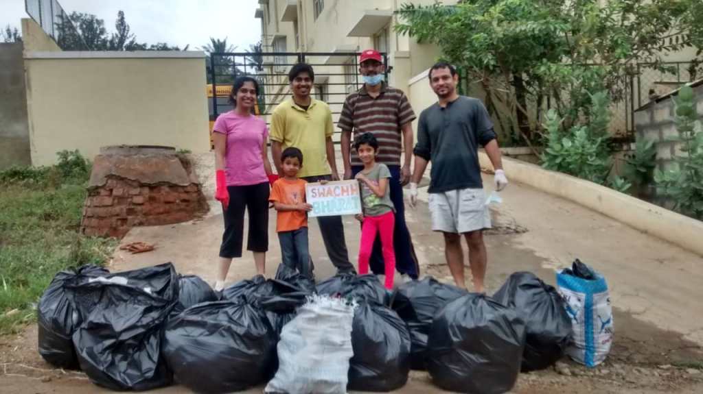 In 2014, when Modi’s government started the Swachh Bharath program, Chaithanya wanted to do her part. On October 2nd she and her family started the clean-up drive at nearby Turahalli Forest and later continued cleaning her neighbourhood every Sunday from 6am to 8am and completed 100 hrs. She and few other volunteers were called to launch and run a waste management program in their apartment. She and her team of volunteers would visit homes, demonstrate segregation of waste (Wet, Dry and Reject waste), educate about the importance of segregation, monitor and help the housekeeping staff. They covered 576 homes in total and this program was a grand success.