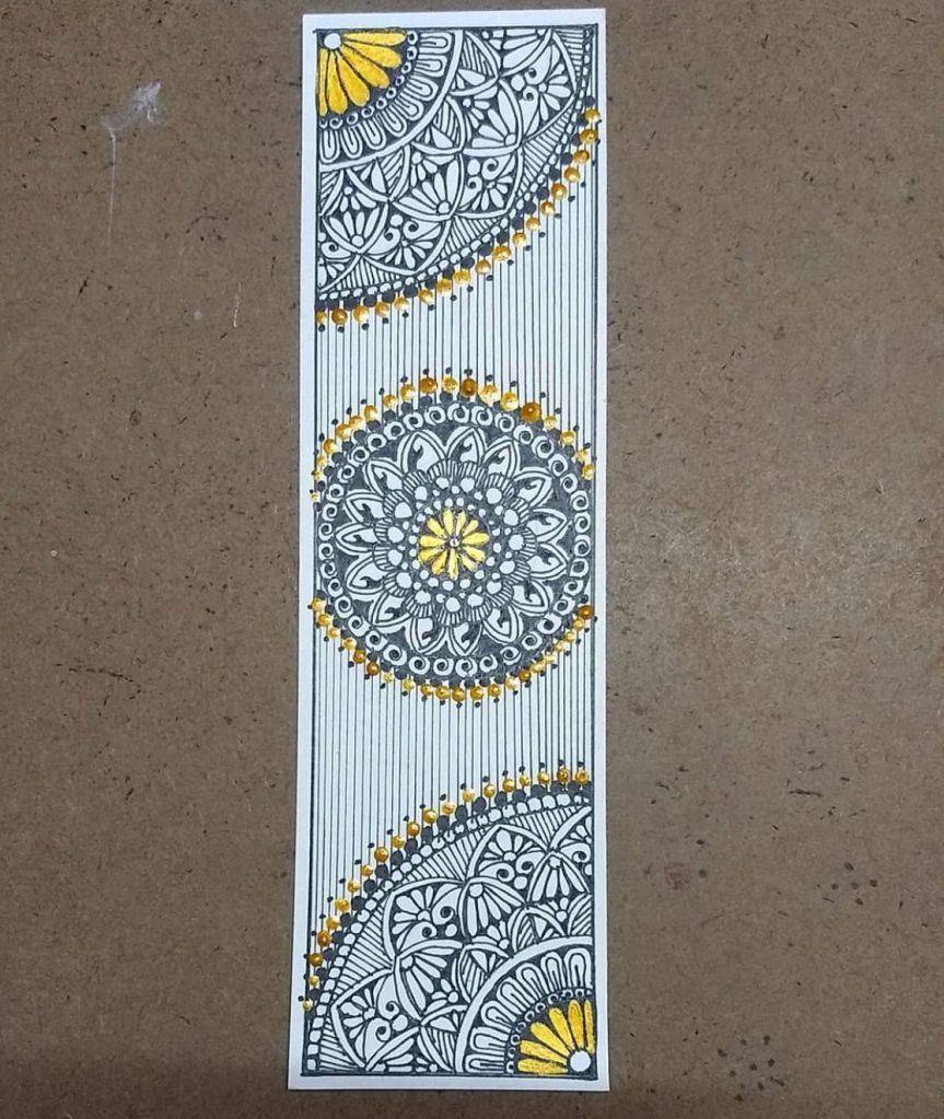 Anitha also learnt Tanjore painting and Mandala art. Art is her passion. She says if one has talent, they should pursue it and not give it up. Anitha self thought these two forms of art and now enjoys creating beautiful bookmarks and greeting cards.