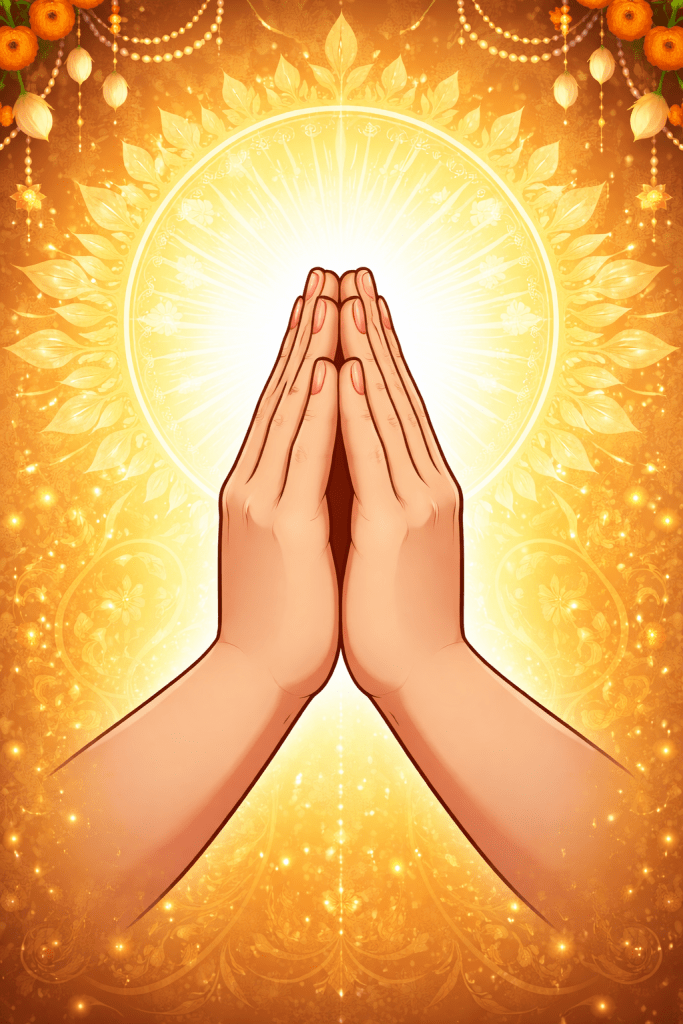 The Little finger said nothing. Seeing this the creator asked why the little finger was not presenting his case. The little finger said ‘ My lord, I have nothing to do with this argument. I am not interested in being the greatest’. The lord asked ‘Why then have you come with the other fingers?’. The little finger responded ‘I am here because I wanted to see you’. The creator was puzzled and asked ‘Why you wanted to see me?’. The Little finger responded ‘I wanted to thank you’. The creator wished to know why the little finger what the thanks was for? The little finger said ‘I am grateful for the opportunity that you have given me. Although I am the smallest, when people visit temples or greet scholars, elders, they do so with folded hands. And when they do so, I am the first one to get full view of the divine or of the scholar or elder. I am not the strongest, nor powerful, not beautiful nor do am I wealthy, but all these are behind me when a human prays with folded hands’.